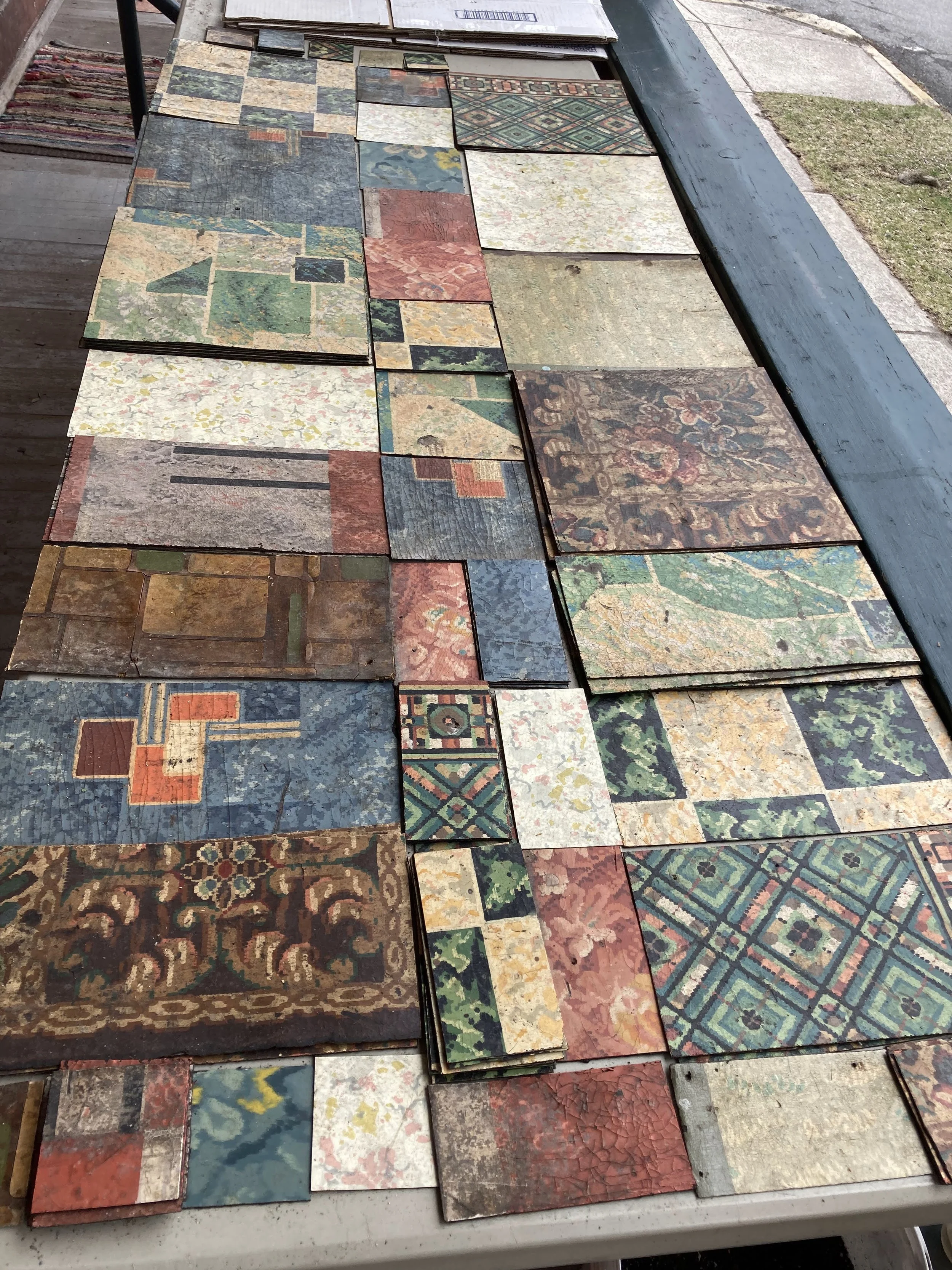 *A note about safety: Yes, I am aware that there is a chance that the backing of some of these could contain asbestos fibers! This is why I waited where I could safely handle them outside. I am being very gentle and careful and conscientious. Also, I might end up sealing them somehow on both sides to prevent any issues in the future.
