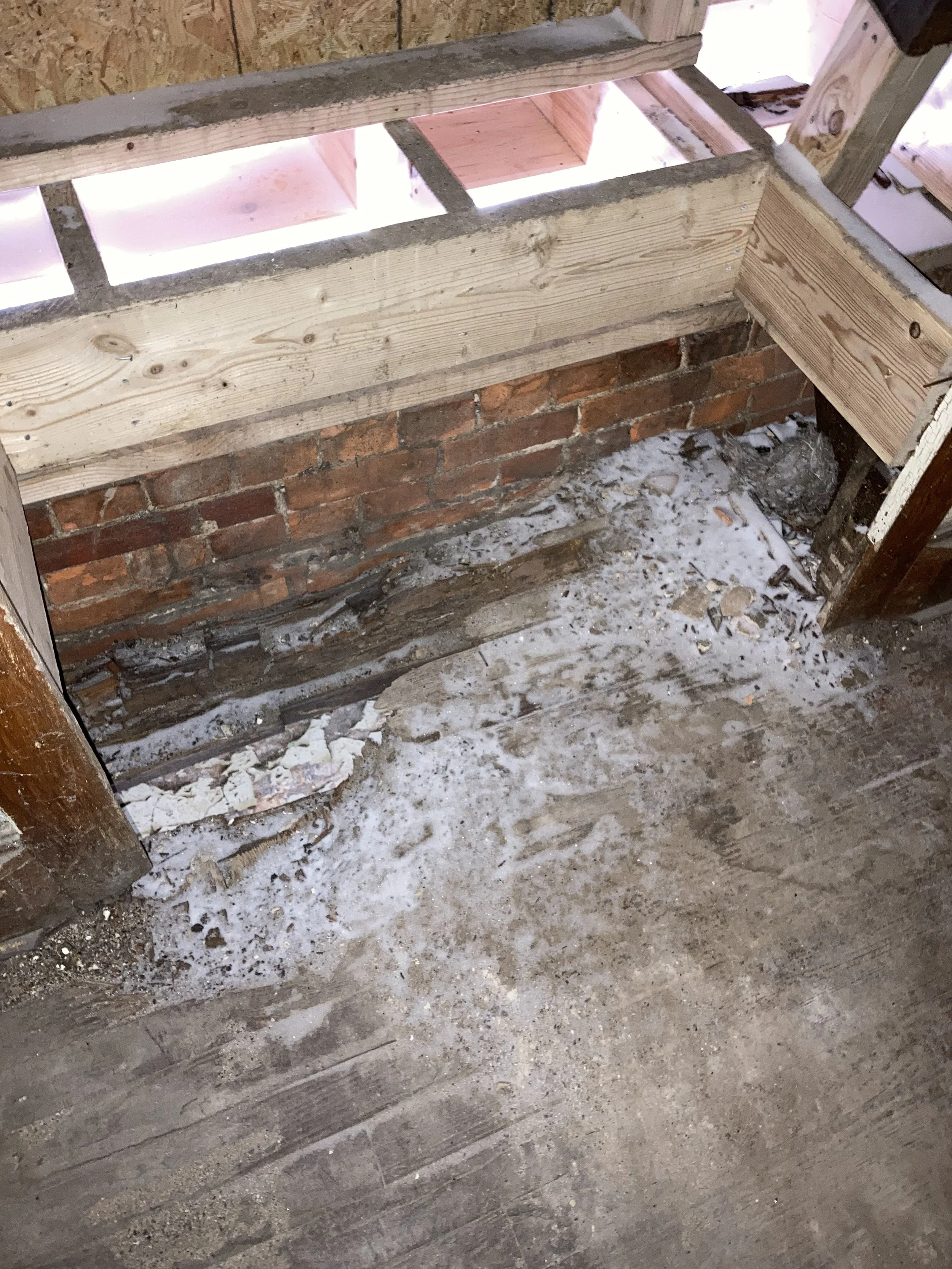 Those crazy frigid high winds caused some mini-snow issues on the third floor, but nothing too terrible. In the western-most room, there were pigeon tracks in the snow! I’m not surprised. Until the masonry can get repaired, that section of the roof is still pretty much wide open to the pigeons. They are discreet enough to never be seen by us, but I had assumed they were back in some form or another. As long as they don’t have any more babies, we’ll be ok!